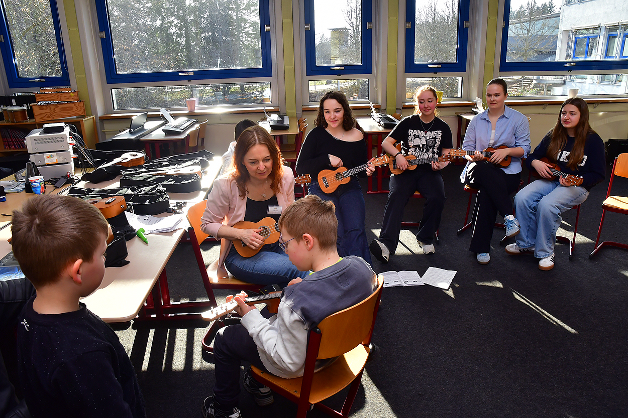 Kreativität kam natürlich nicht auch in den Musikräumen nicht zu kurz, wobei man sich an der Ukulele ausprobieren konnte oder eine große Vielfalt an Instrumenten austesten konnte.